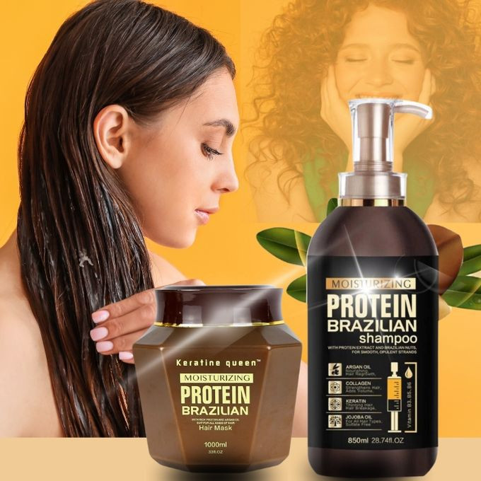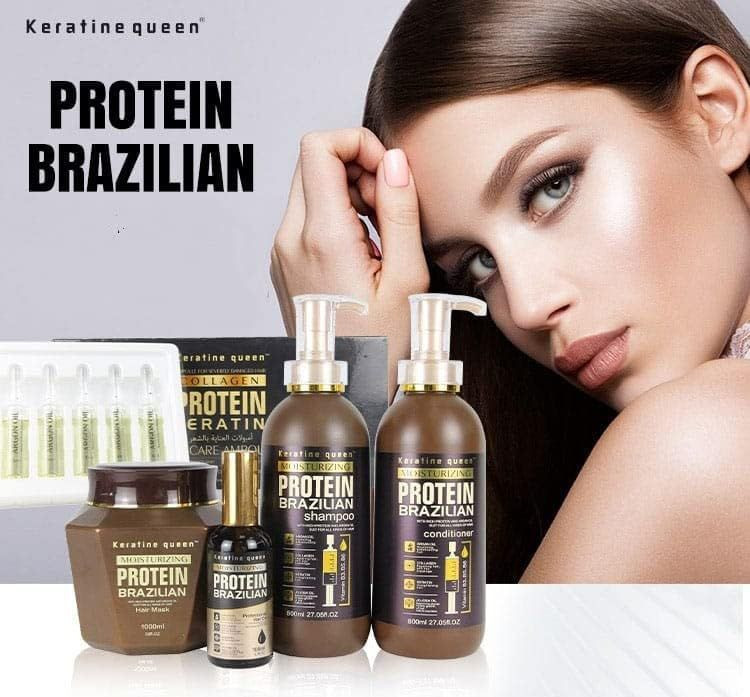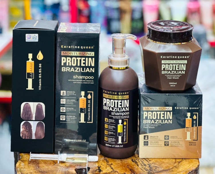 شامپو و ماسک مو کراتین کویین مدل PROTEIN BRAZILIAN پروتئین برزیلی اصل انگلیس-هولوگرام دار