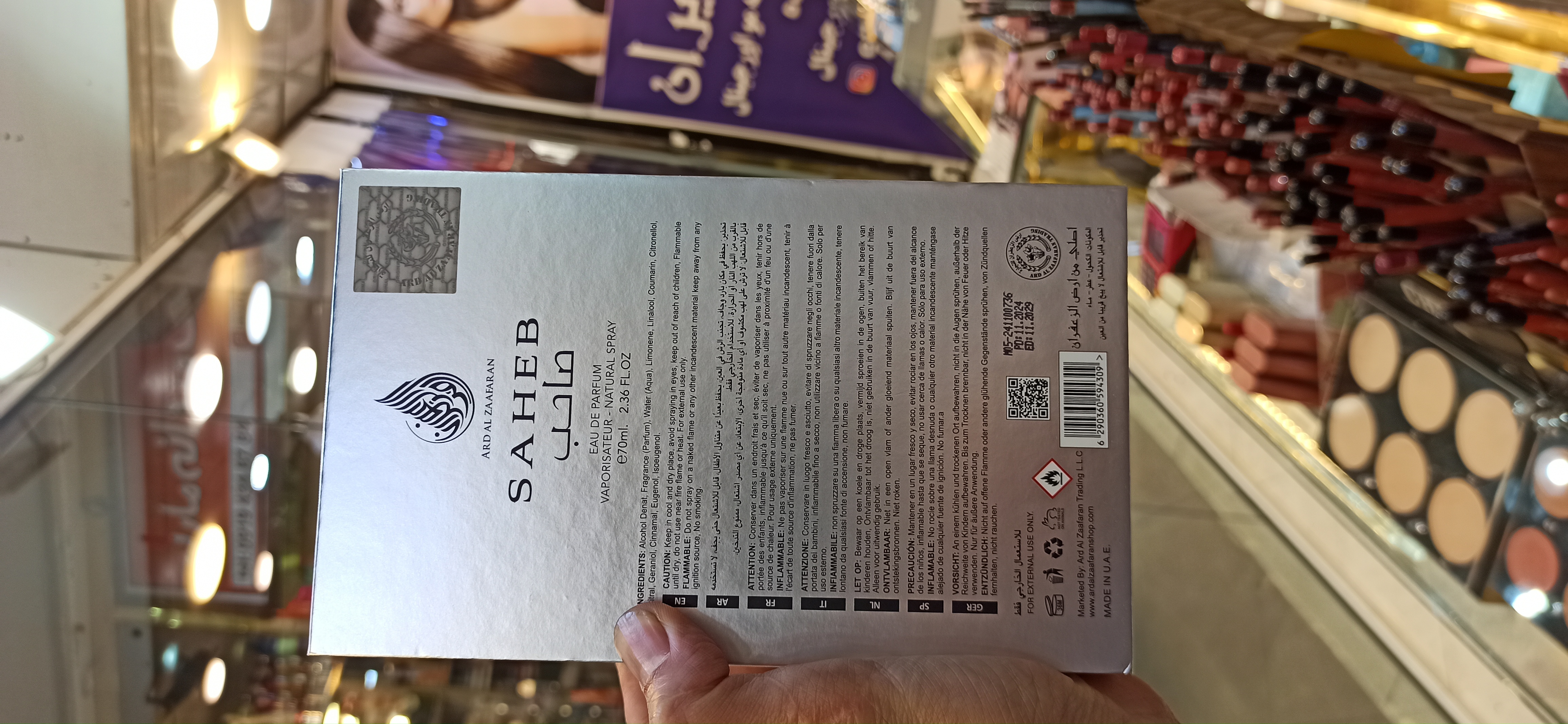 ویژگیهای ادکلن صاحب اینتنس سفید ارض الزعفران نت اولیه: ترنج، گریپفروت، زنجبیل نت میانی: اسطوخودوس، هل، مریمگلی نت پایانی: صمغ، چوب صندل، عنبر نوع عطر: ادو پرفیوم رایحه: خنک، تند، مرکباتی گروه بویایی: چوبی، مرکباتی، معطر ماندگاری: خوب پخش بو: قوی مناسبت استفاده: روزمره، رسمی، مهمانی، اسپرت فصل مناسب: بهار، تابستان، اوایل پاییز حجم: ۷۰ میلیلیتر ساخت کشور: امارات متحده عربی شباهت رایحه: لویی ویتون ایمجینیشن