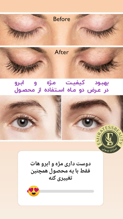 افزایش طول و حجم دهنده تا 87% ، تقویت کننده تا 74%، کاهش ریزش تا 70%، افزایش ضخامت تار مو مژه و ابرو