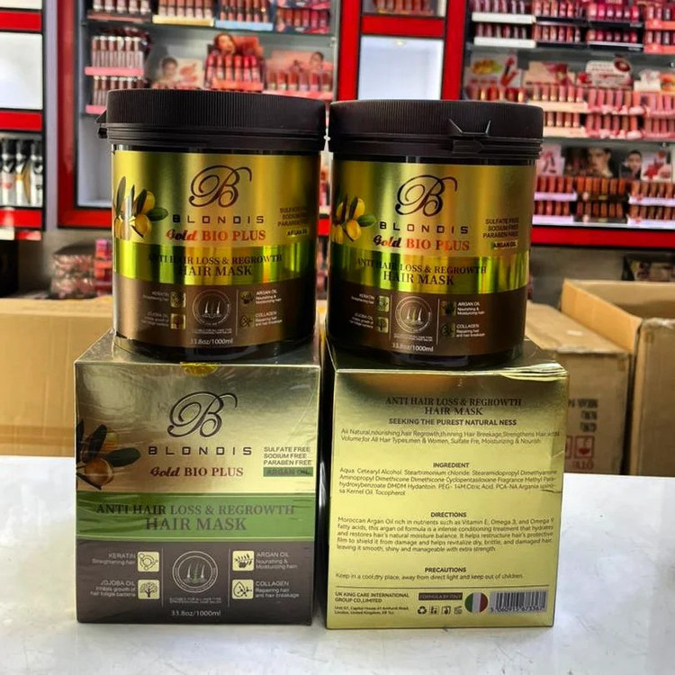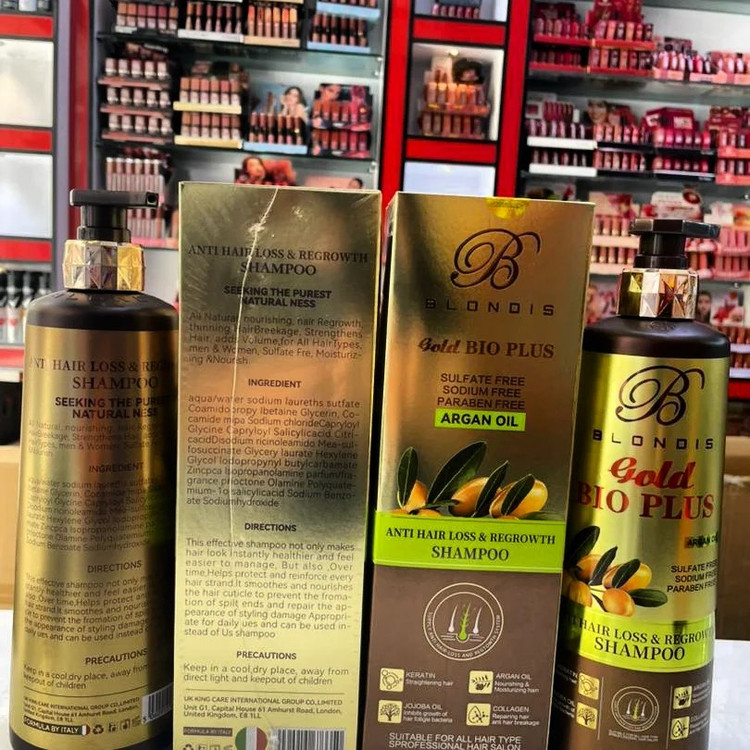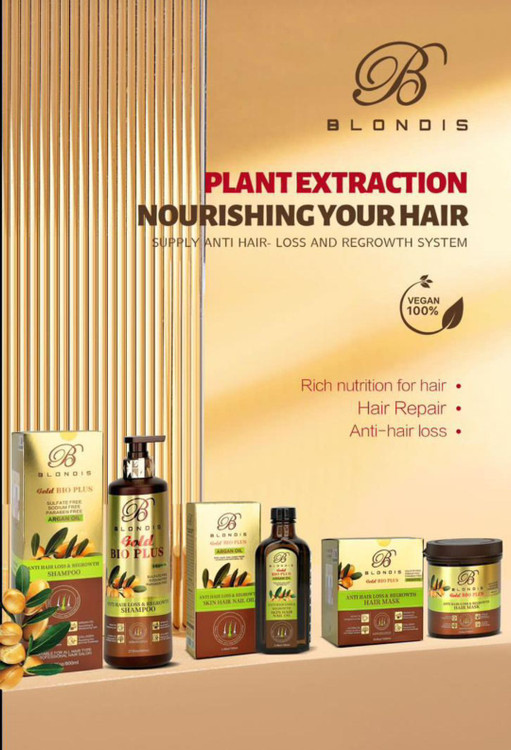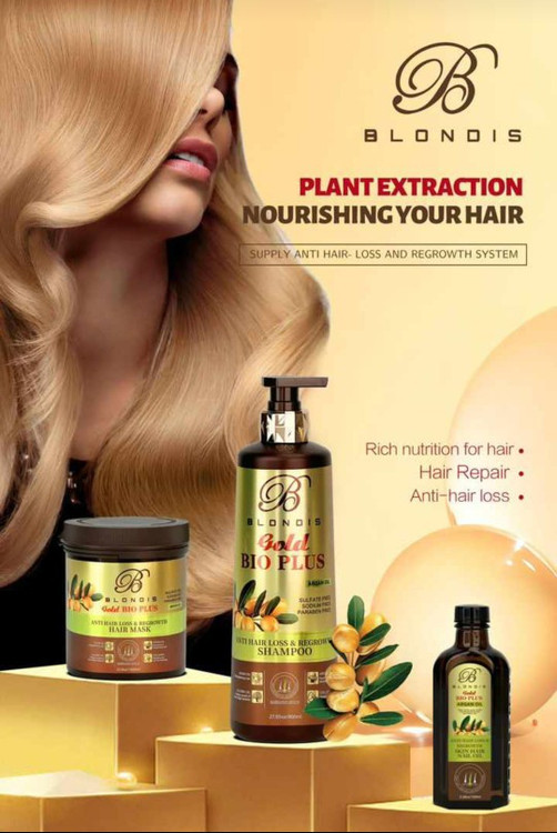 شامپو و ماسک مو آرگان فری سولفات برند BLONDIS gold BIO PLUS