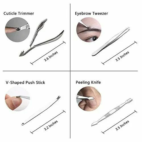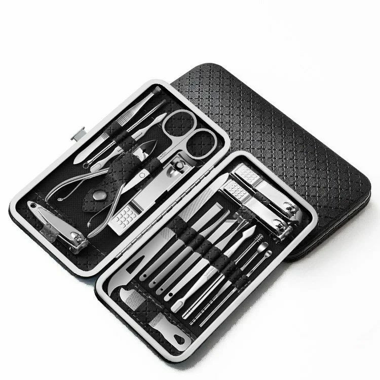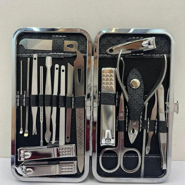 ست ۱۹ تکه استیل تمام ابزارهای لازم رو درون کیفی جای داده که برای ناخن های دست و پا مناسب هست.